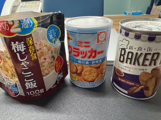 自社のBCPのマニュアルに訂正がないかを確認した後、防災食でお昼ご飯に。